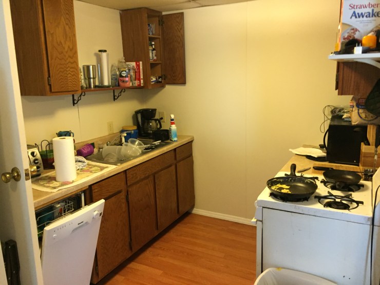 Here is a little bitty house, a one bedroom house right by campus. This one bedroom apartment is it’s own little house with hard floors in the living room, a parking space right at the door, carpet in the bedroom and a nice bathroom with a bath tub shower combo, there is also a giant closet.